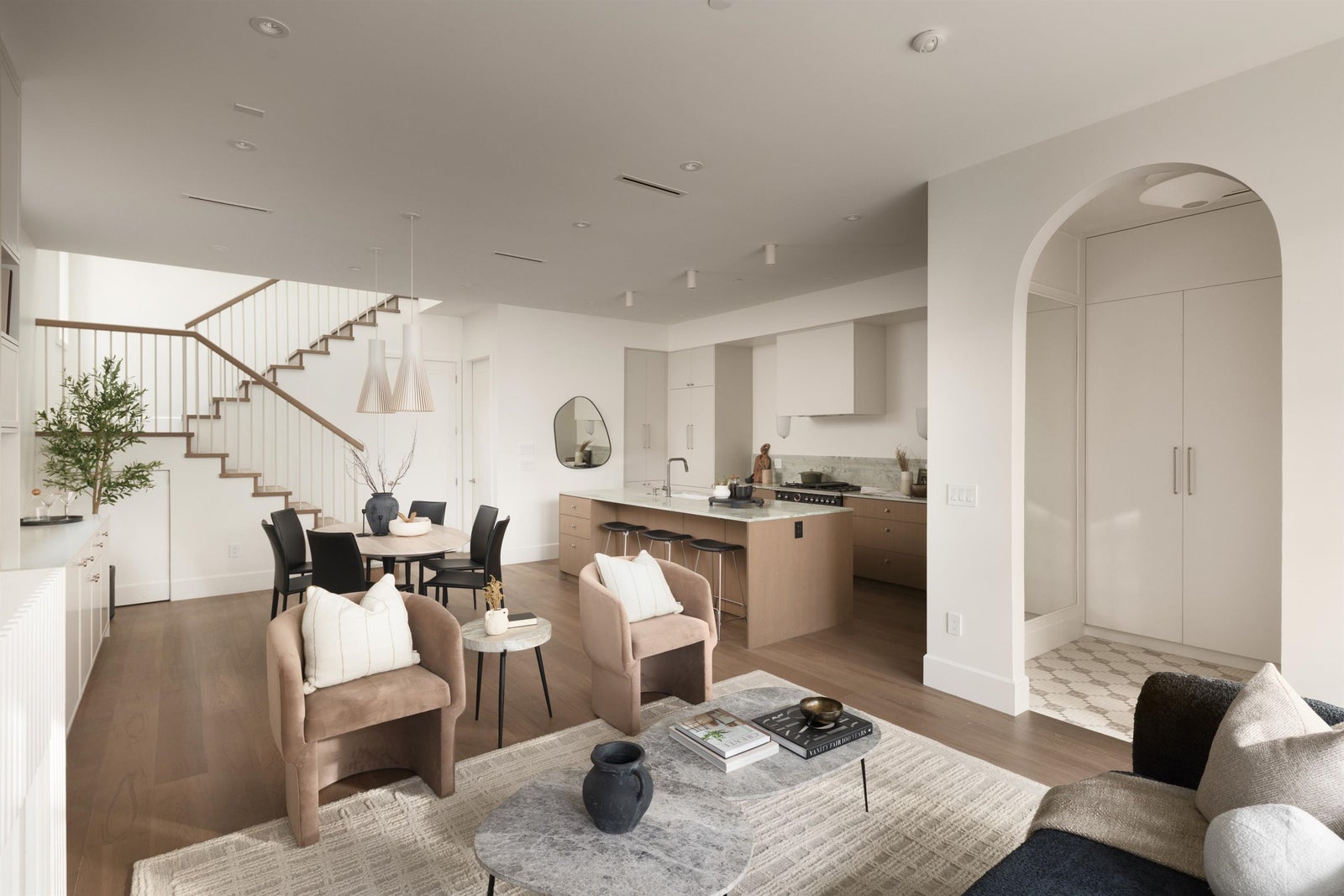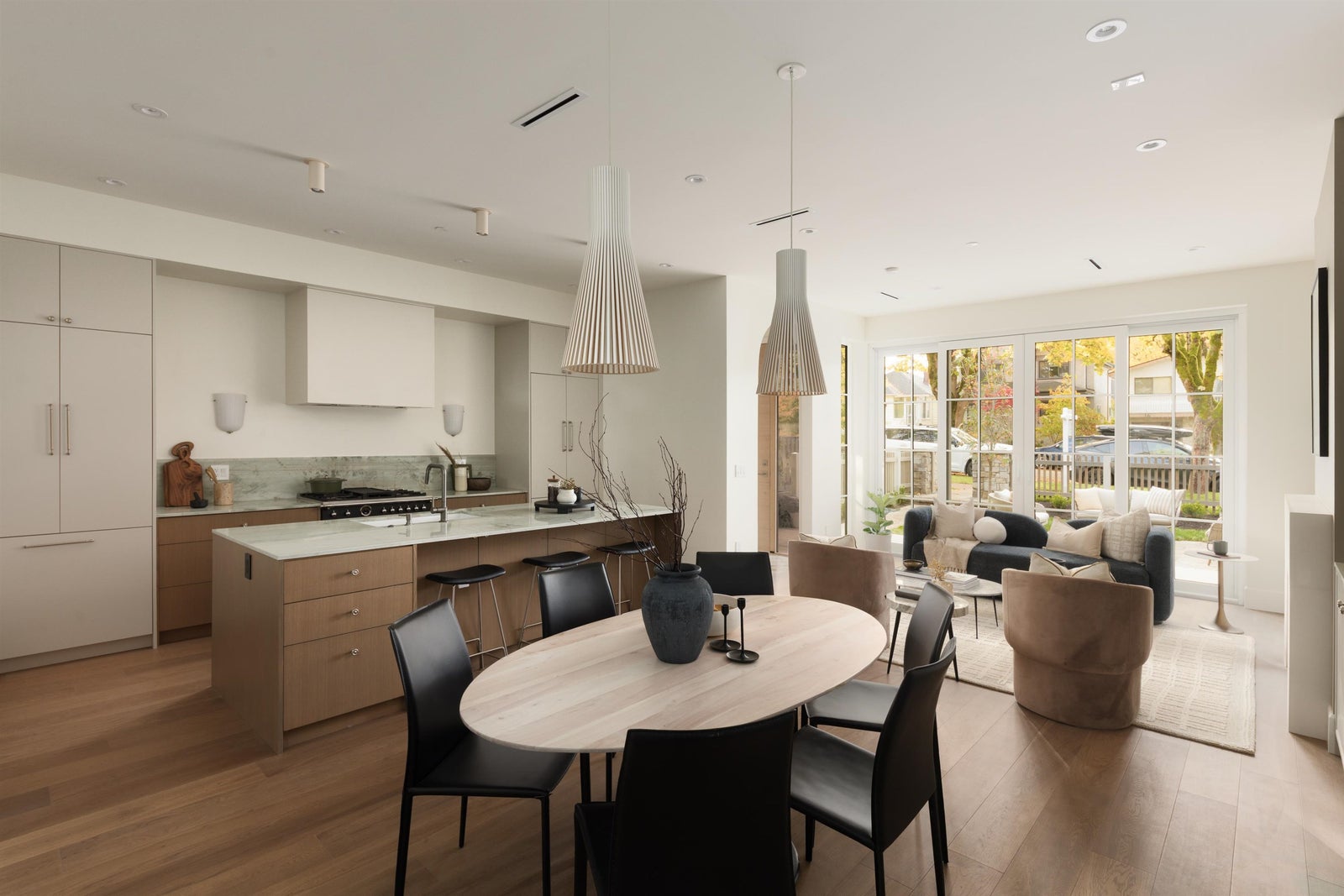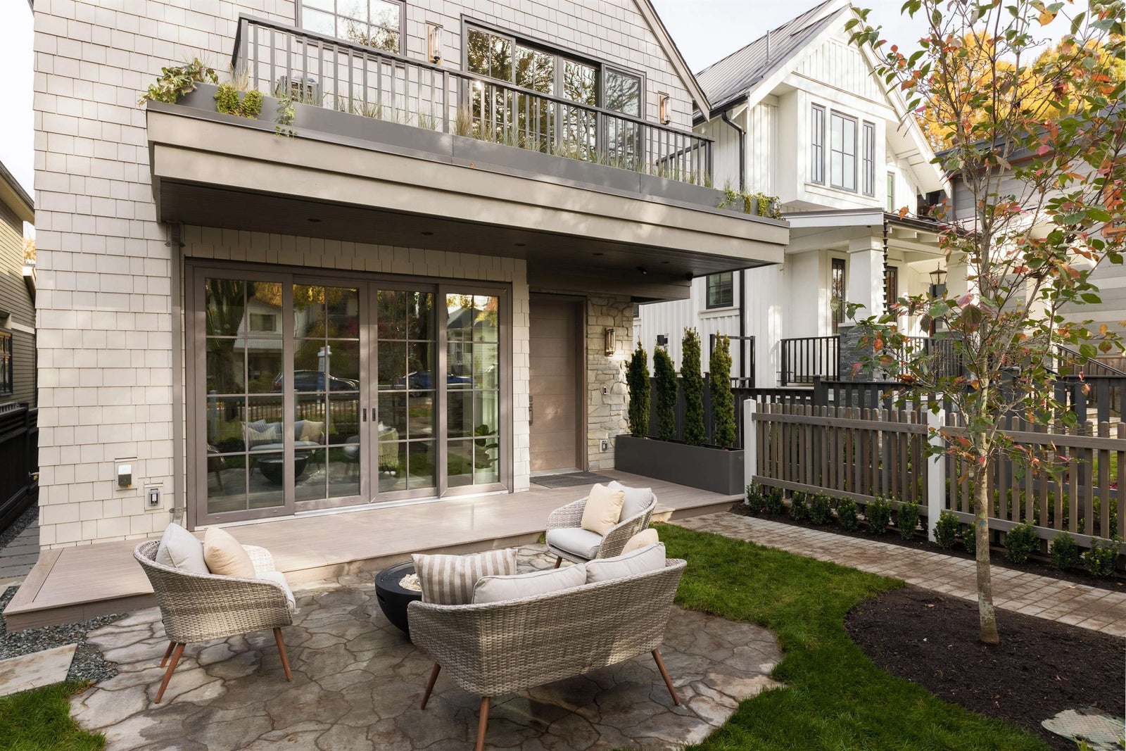 Designed by Jacqueline Taggart, this custom 2-storey home pairs timeless transitional architecture with elegant interiors & functional livability. Expansive main floor features 10ft ceilings, Esmeralda quartzite kitchens with Bertazzoni appliances, custom millwork throughout & lift-and-slide doors that lead to your private South-facing yard. Upstairs, vaulted 11'8 ceilings crown three spacious bedrooms. The primary bedroom is a generous 13'3 x 13'7 with a walk-in closet, sliding glass doors to your sunny balcony & a truly luxurious ensuite. Ample storage throughout the home highlighted by an epoxied crawlspace. With thoughtful planning, premium finishes, & a true single-family feel, this home elevates everyday comfort for families & down-sizers alike.